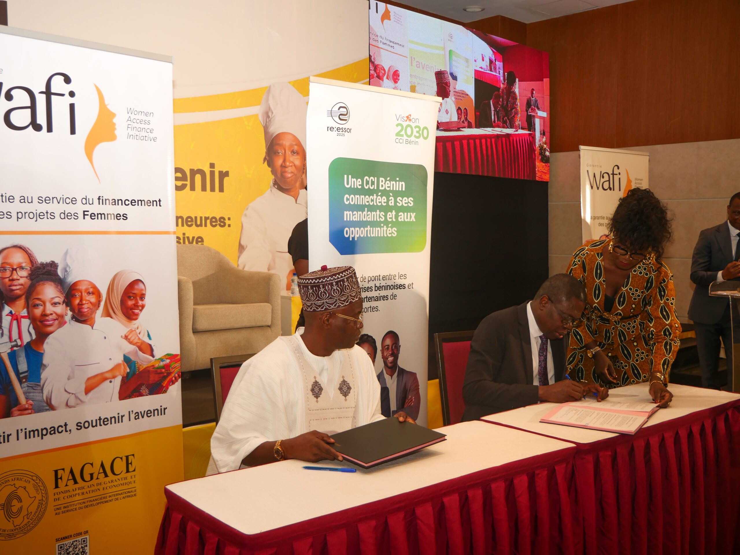 Placée sous le thème « Accélérer l’accès au financement des femmes entrepreneures : un engagement collectif pour une croissance inclusive », cette rencontre a servi de cadre à la présentation officielle de WAFi, un mécanisme innovant destiné à faciliter l’octroi de crédits aux petites et moyennes entreprises portées notamment par des femmes. Elle a également été marquée par la signature de partenariats stratégiques entre le FAGACE et plusieurs acteurs majeurs du secteur économique national, notamment la Chambre de Commerce et d’Industrie du Bénin, Bank of Africa et la Banque Internationale pour l’Industrie et le Commerce.