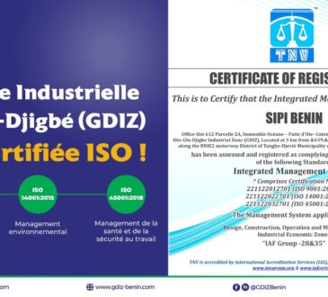 BÉNIN A L’INSTANTECONOMIEINTERNATIONALBénin : la Zone industrielle de Glo-Djigbé obtient trois certifications ISOLA REDACTION3 ans déjà31 janvier 20232.26KBénin : la Zone industrielle de Glo-Djigbé obtient trois certifications ISO La GDIZ vient d’enregistrer une nouvelle performance. Le hub...