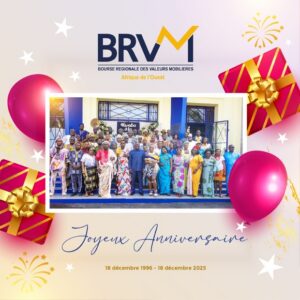À l’occasion de cet anniversaire, elle réaffirme sa volonté de poursuivre les réformes, d’accélérer la digitalisation du marché, de renforcer l’innovation financière et d’accompagner les acteurs économiques dans leurs stratégies de financement durable. Depuis sa création en 1996, la Brvm contribue ainsi au développement d’un marché financier moderne, transparent et attractif pour les investisseurs locaux et internationaux, consolidant son rôle de moteur de croissance et d’intégration au bénéfice des populations de l’UEMOA.