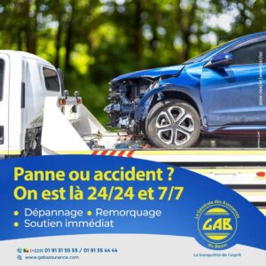 Ce service, créé par la Générale des Assurances du Bénin, est conçu pour vous permettre de reprendre la route en toute sérénité.Que vous ayez besoin d’un remorquage rapide, d’une réparation sur place ou d’une simple assistance pour un incident mineur, l’équipe de GAB AUTO se mobilise pour vous.