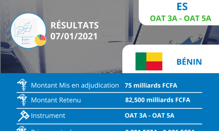 LE BENIN DECROCHE 82 MILLIARDS FCFA SUR LE MARCHE FINANCIER DE L’UMOA-TITRES L’Agence UMOA-Titres a publié le compte rendu de l’émission d’Obligations Assimilables du Trésor du Bénin du 7 janvier 2021. Le Bénin a obtenu un emprunt de 82 milliards de francs CFA. Pour une demande de 75 milliards FCFA...